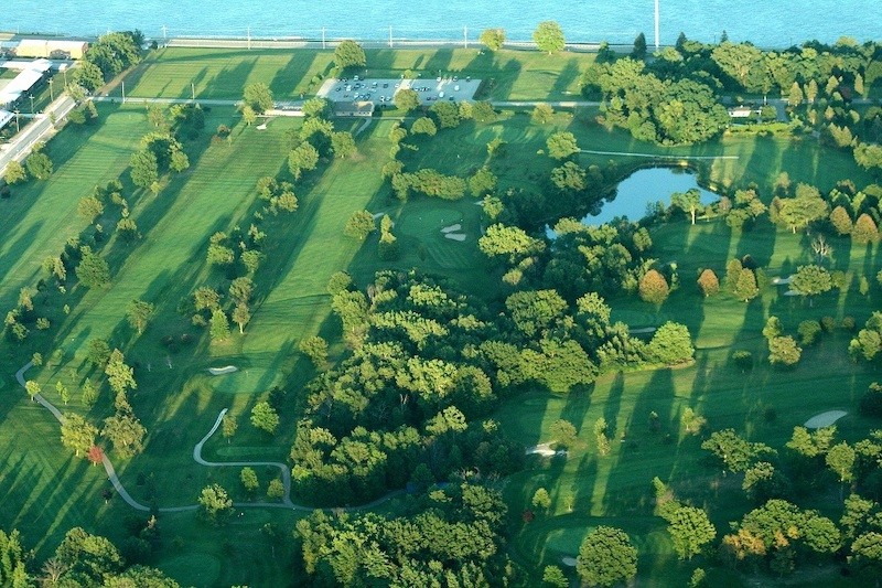 Beautiful 18-hole course along the St. Clair River, with Cuttle Creek winding through the parkland layout.
