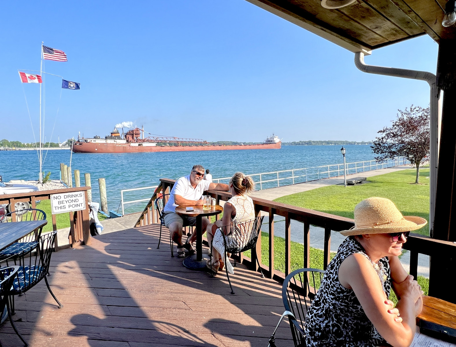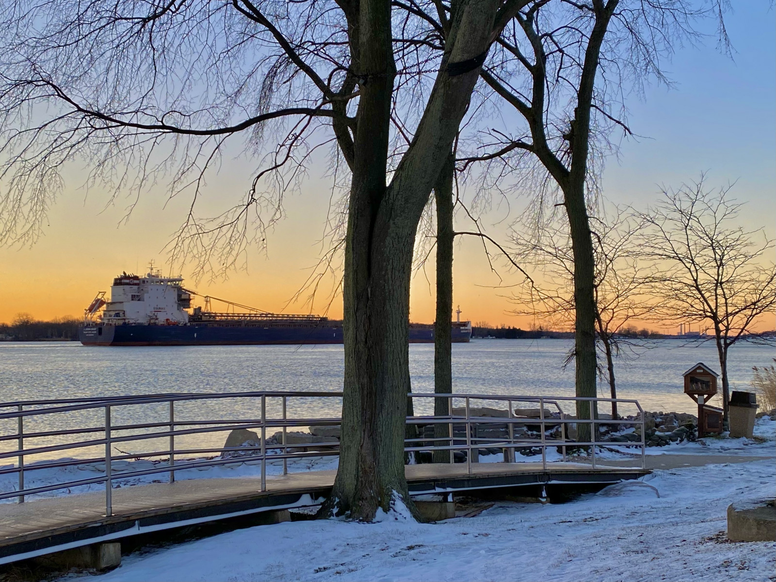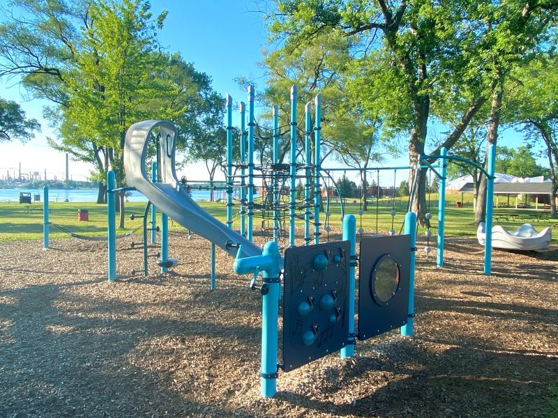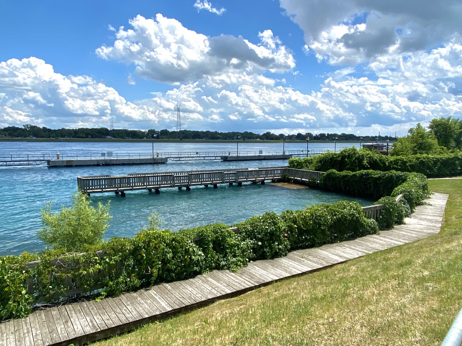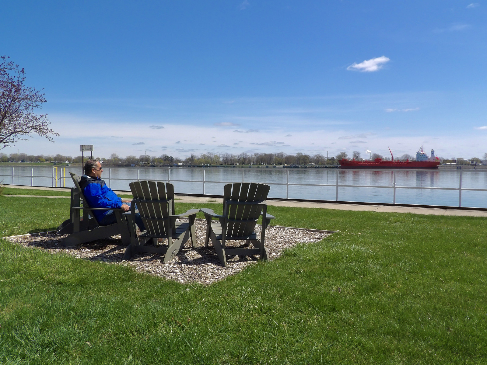 Waterfront park along the St. Clair River with views of passing freighters.