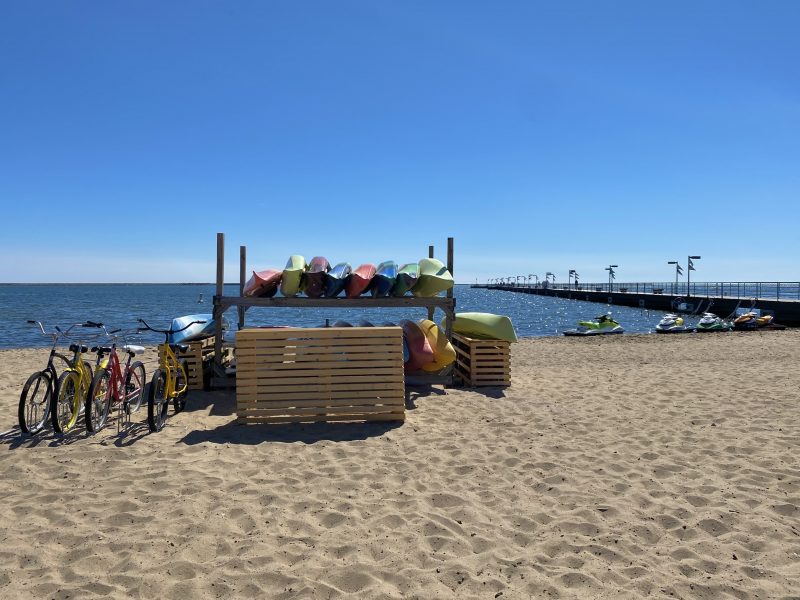 A lengthy pier, called Trescott Street Pier, extends from the parking area, offering a scenic view of the lighthouse and Lake Huron. A kayak can be launched from the north side of the park.